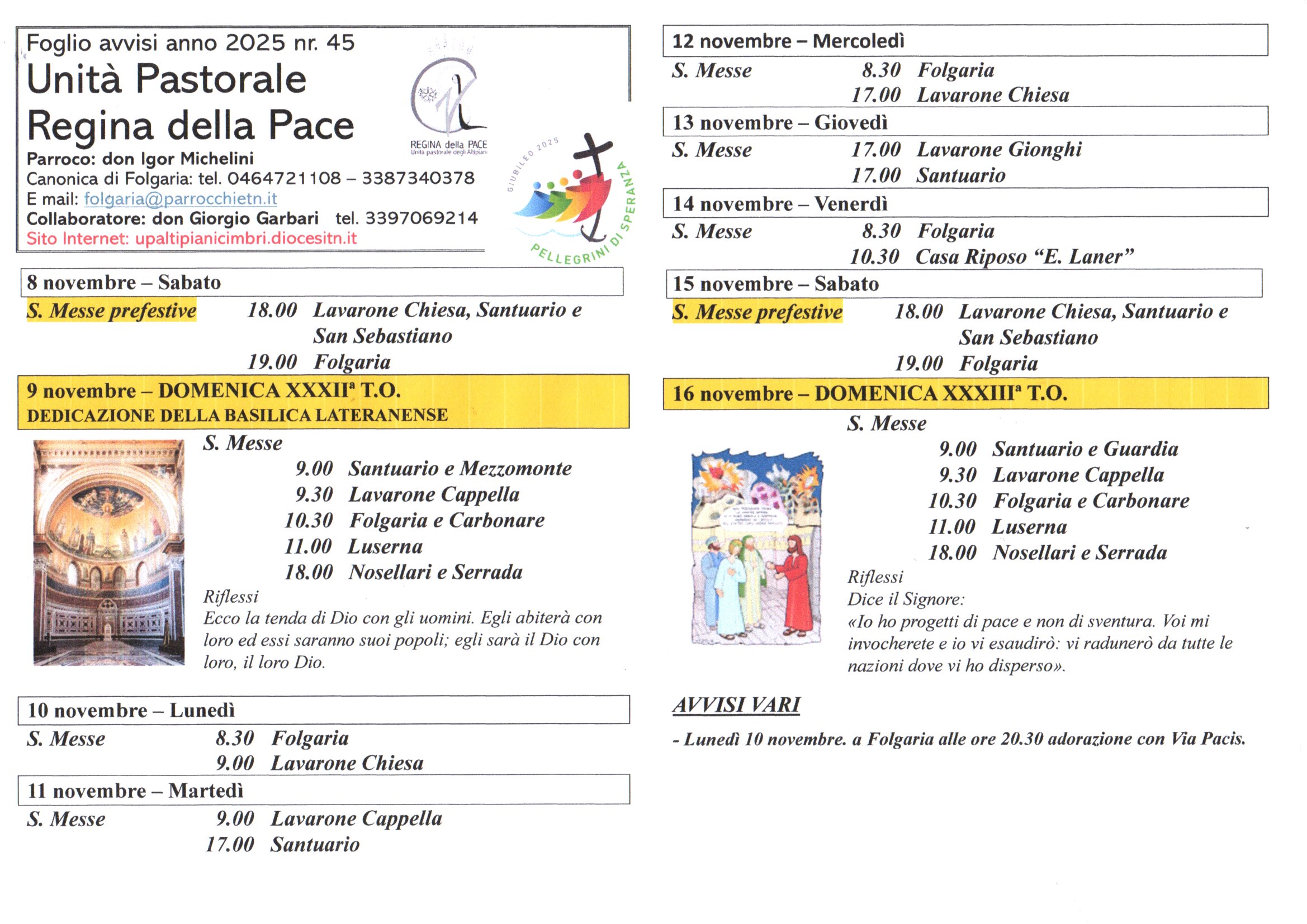 AVVISI SETTIMANALI 9 NOVEMBRE – 16 NOVEMBRE 2025