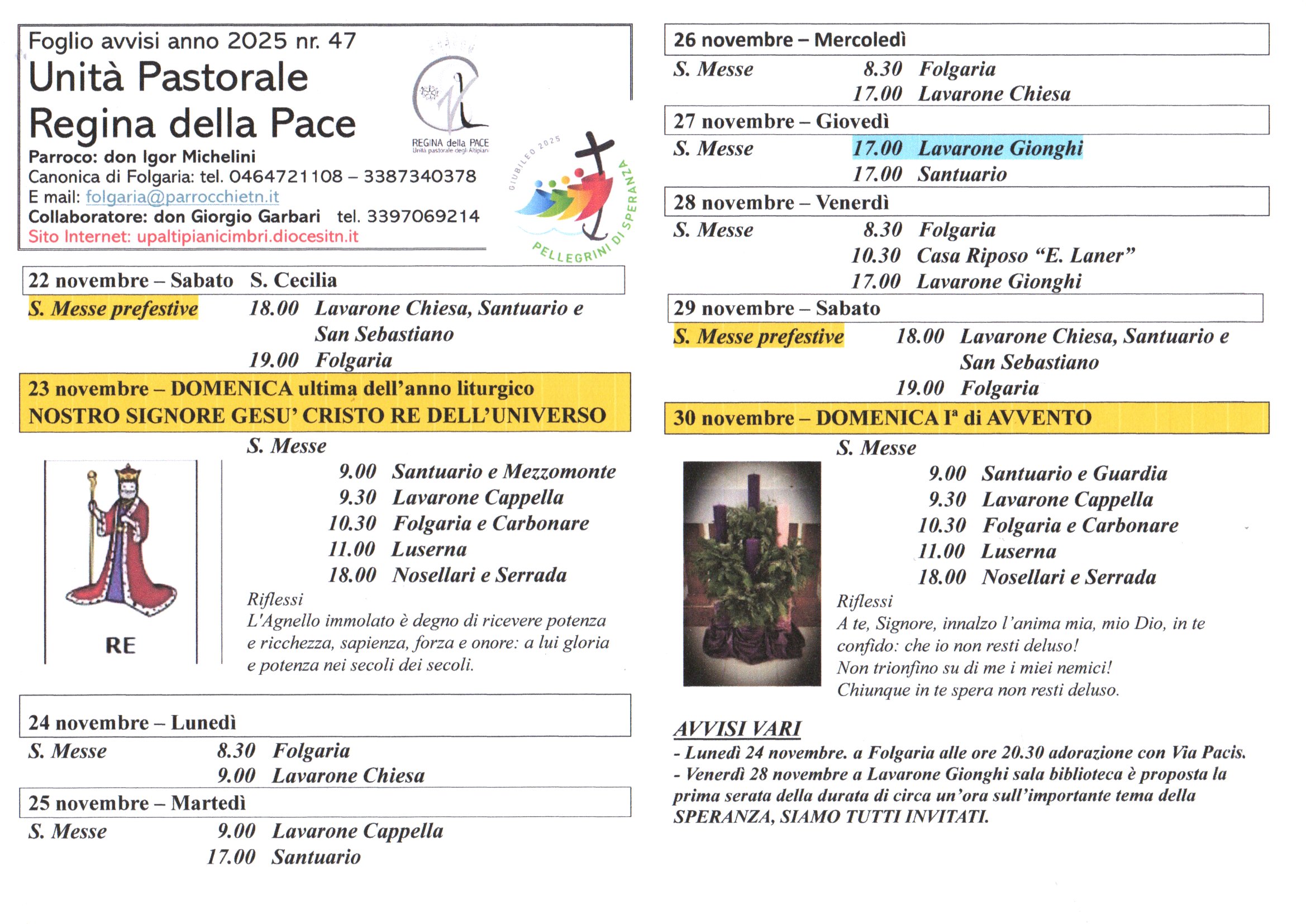 AVVISI SETTIMANALI 23 NOVEMBRE – 30 NOVEMBRE 2025