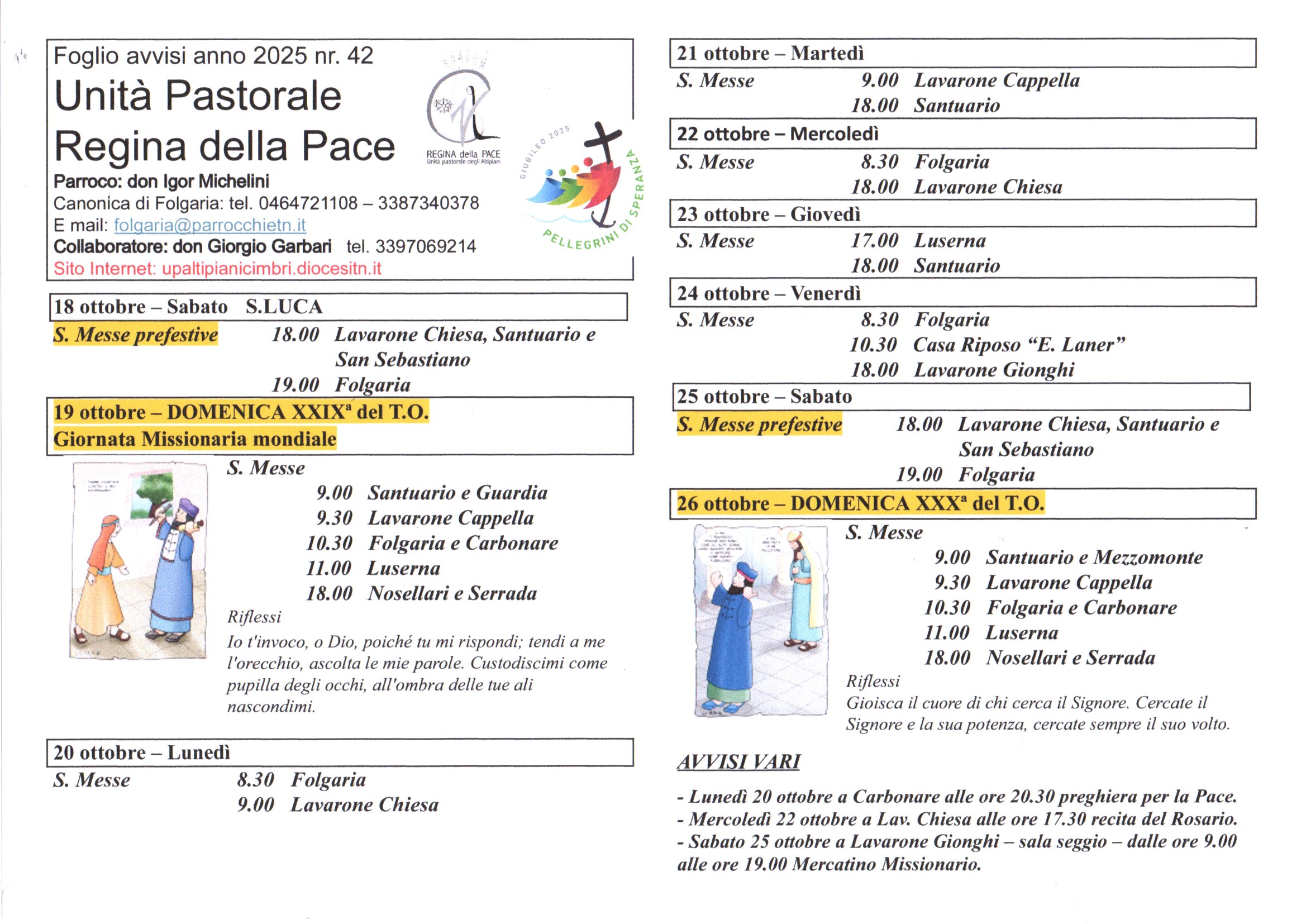 AVVISI SETTIMANALI 19 OTTOBRE – 26 OTTOBRE 2025