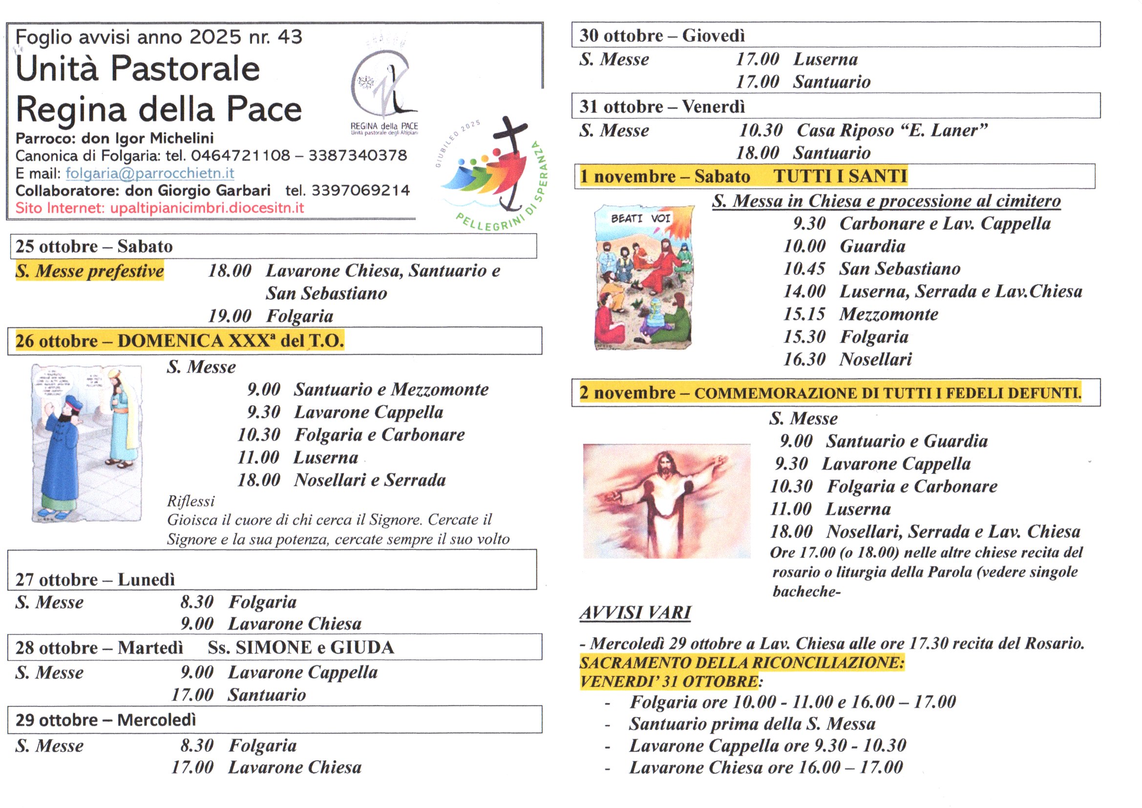 AVVISI SETTIMANALI DAL 26 OTTOBRE AL 2 NOVEMBRE 2025