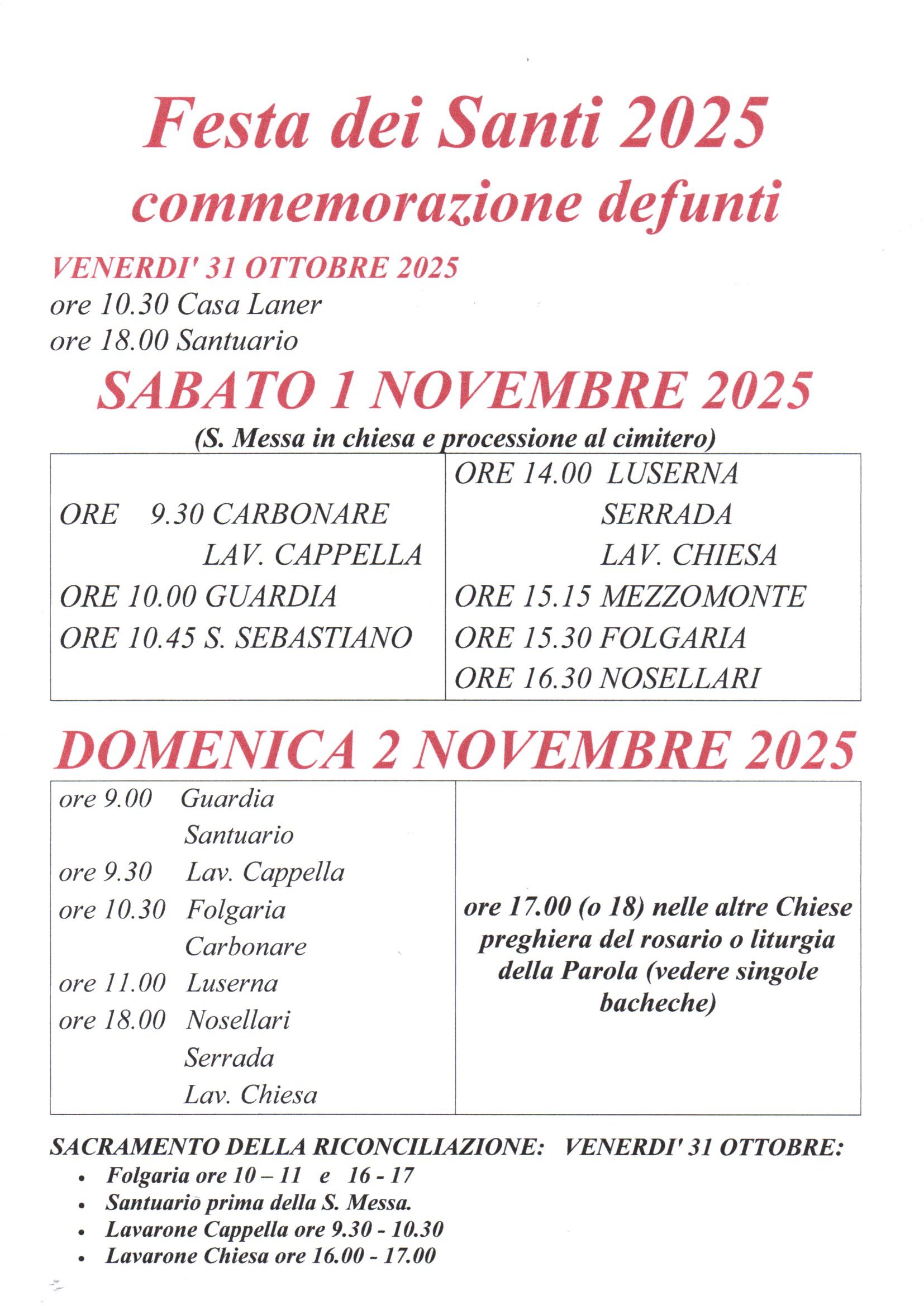 CELEBRAZIONI FESTIVITA’ DEI SANTI E COMMEMORAZIONE DEI DEFUNTI 2025