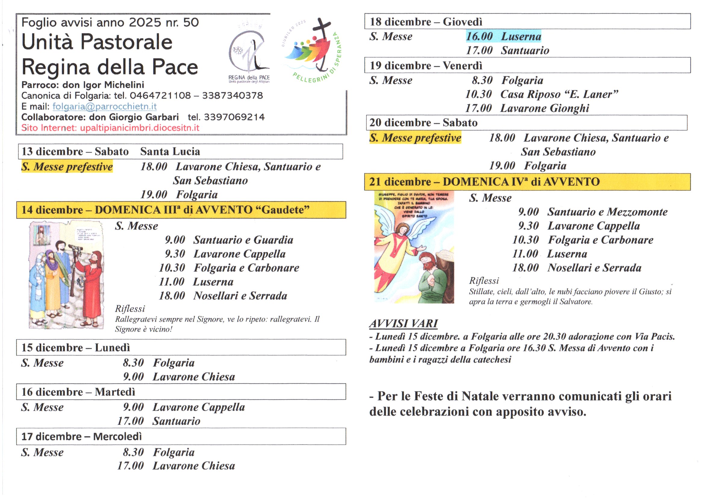 FOGLIO SETTIMANALE 14 DICEMBRE 2025 – 21 DICEMBRE 2025 Pubblicato il 14 Dicembre 2025 Share this...FacebookGoogleTwitterLinkedin Share this...FacebookGoogleTwitterLinkedin