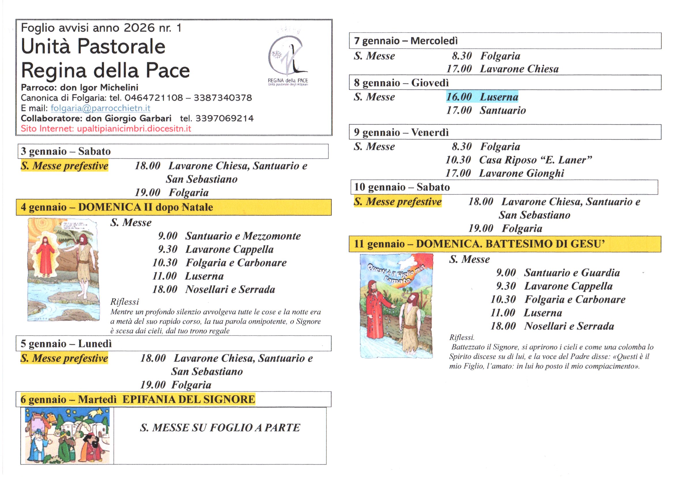 AVVISI SETTIMANALI 4 GENNAIO – 11 GENNAIO 2026 Pubblicato il 3 Gennaio 2026 Share this...FacebookGoogleTwitterLinkedin Share this...FacebookGoogleTwitterLinkedin