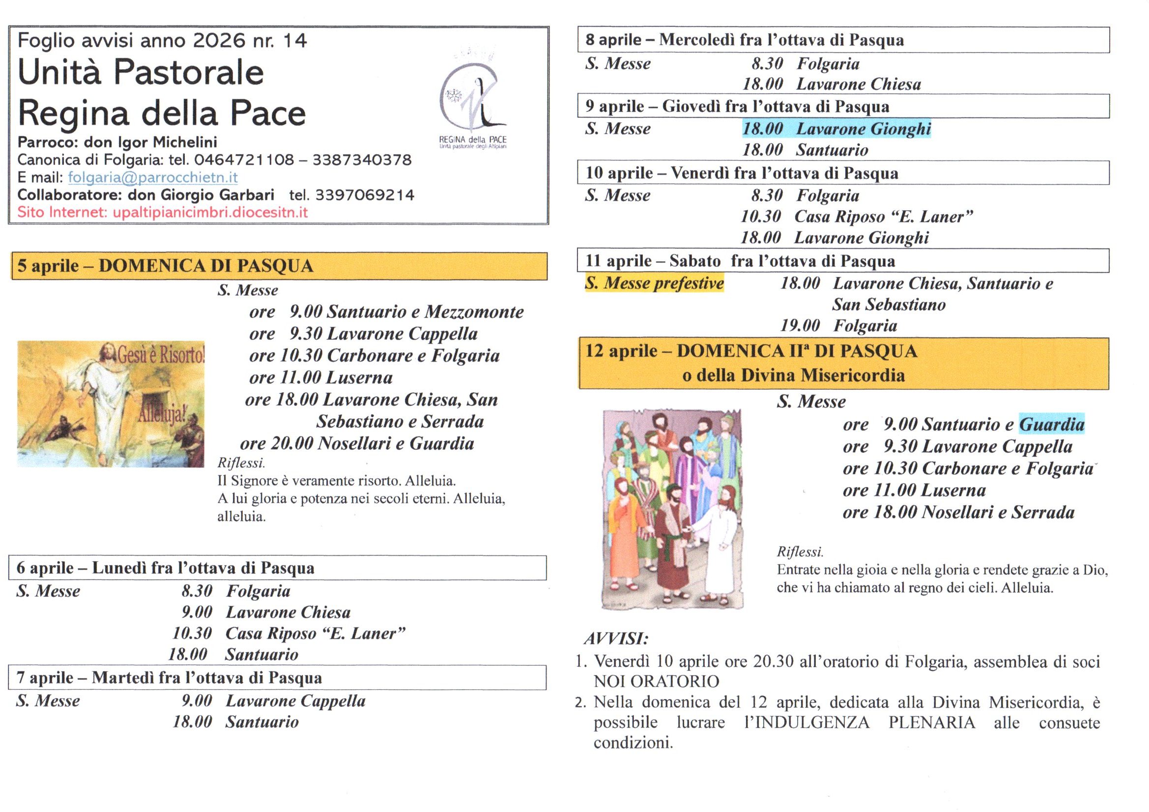 FOGLIO SETTIMANALE 29 MARZO – 5 APRILE 2026