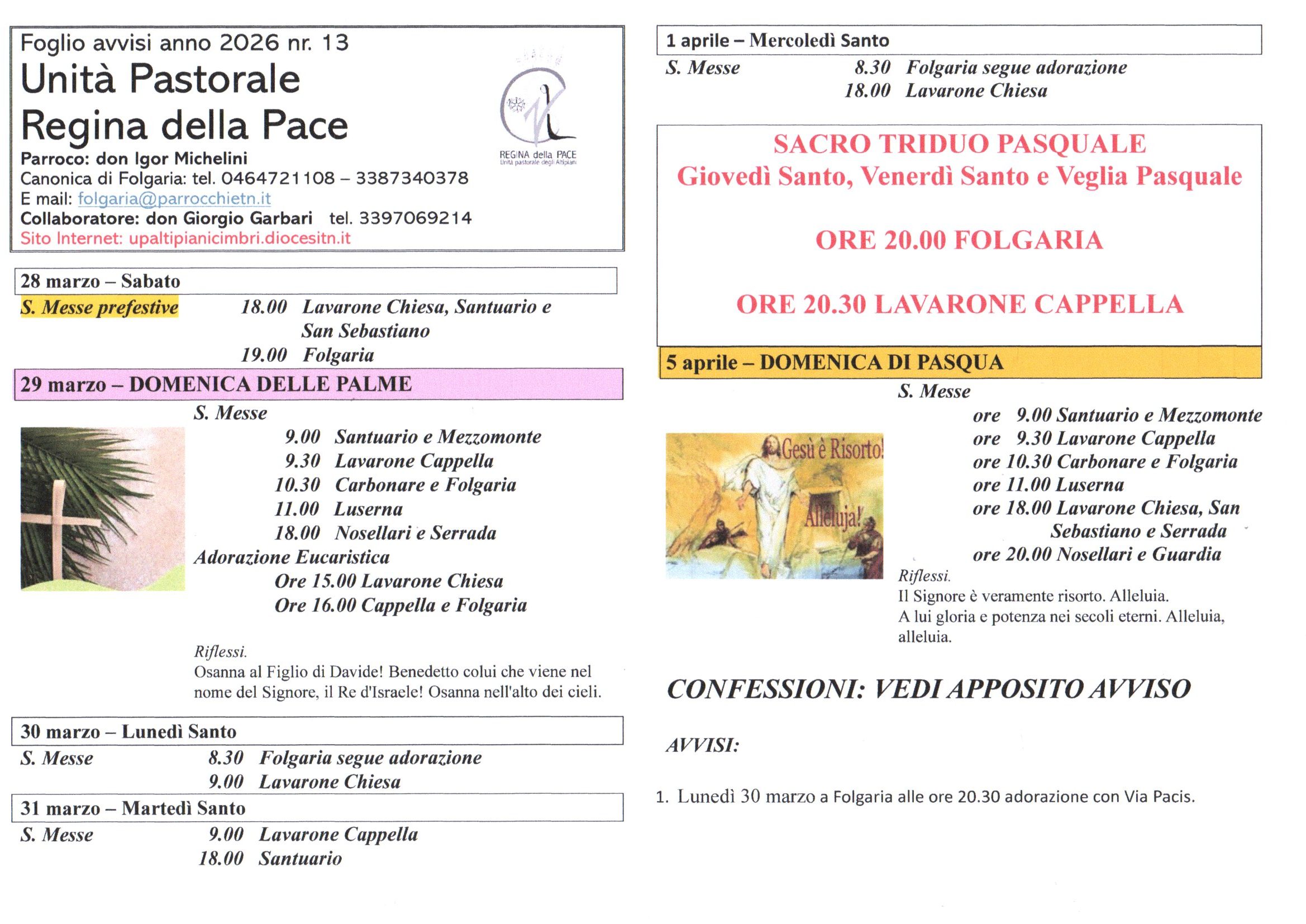 © 2026 ARCIDIOCESI DI TRENTO - ZONA PASTORALE VALSUGANA E PRIMIERO UNITA' PASTORALE REGINA DELLA PACE PARROCCHIE ALTIPIANI FOLGARIA – LAVARONE – LUSERNA