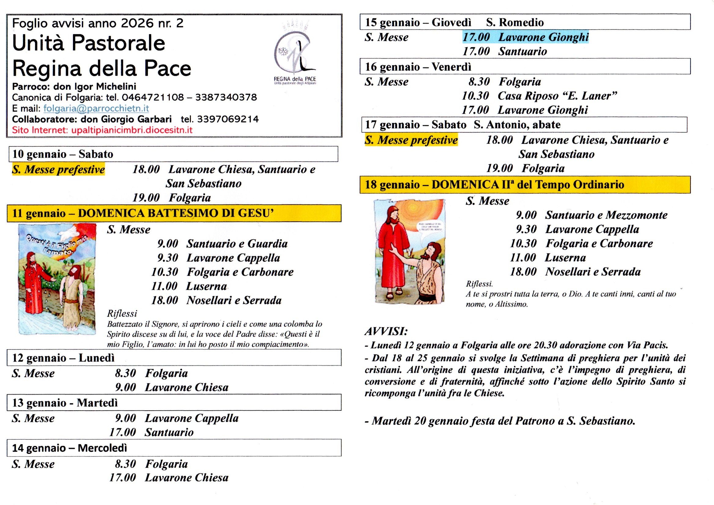 FOGLIO SETTIMANALE NR. 2 – 11 GENNAIO – 18 GENNAIO 2026